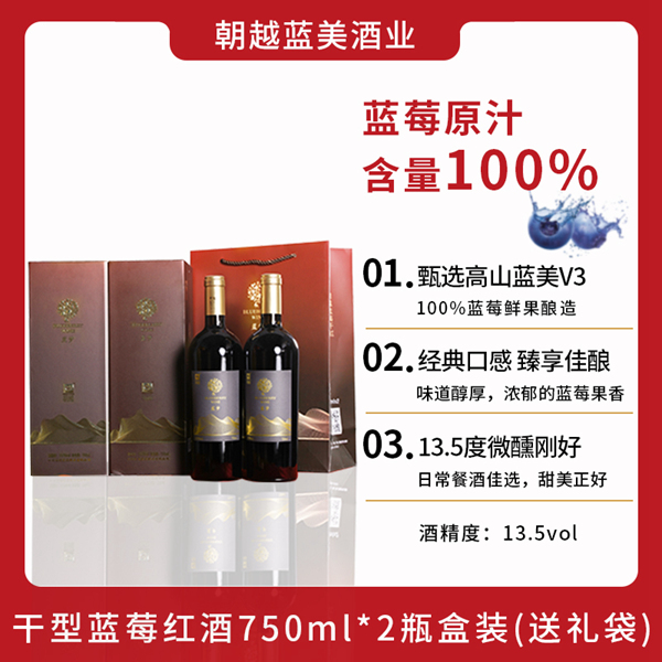 干型蓝莓红酒750ml*2瓶盒装(送礼袋)